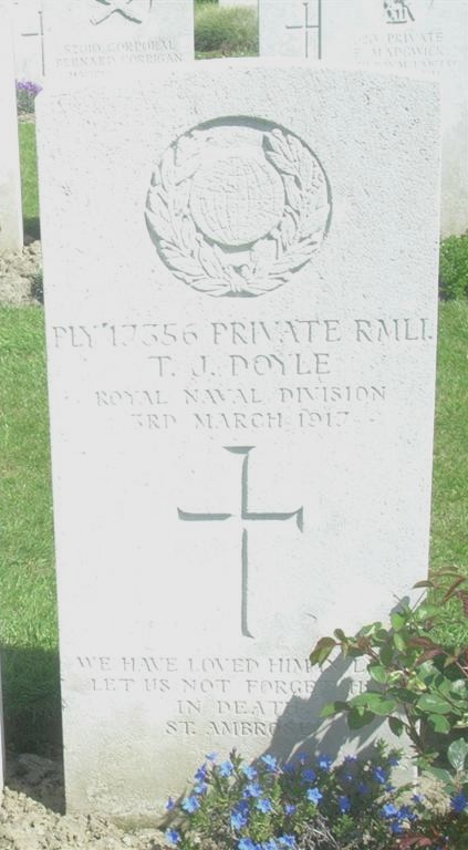 Son of Bridget and the late John Doyle, of 24, Clonmore Rd., Ballylough, Dublin. Native of Ballylough. Served with Royal Naval Division at Gallipoli.