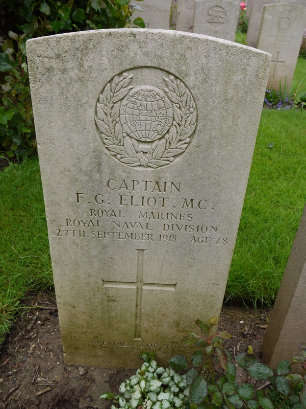 Croix de Guerre(Belgium). Son of Capt. Laurence Henry Eliot (R.A. Retired) and Mrs. Eliot, of 20, Wonford Rd., Exeter.