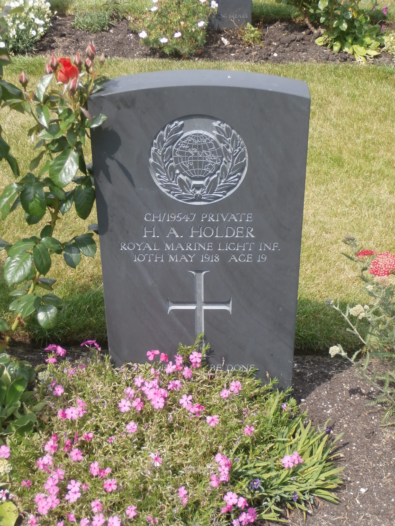 Son of Harry Josiah Holder, of 58, Pollock Rd., Southwark, London. Took part in the operations against Zeebrugge on board H.M.S. "Iris II" on the 23rd April, 1918.
