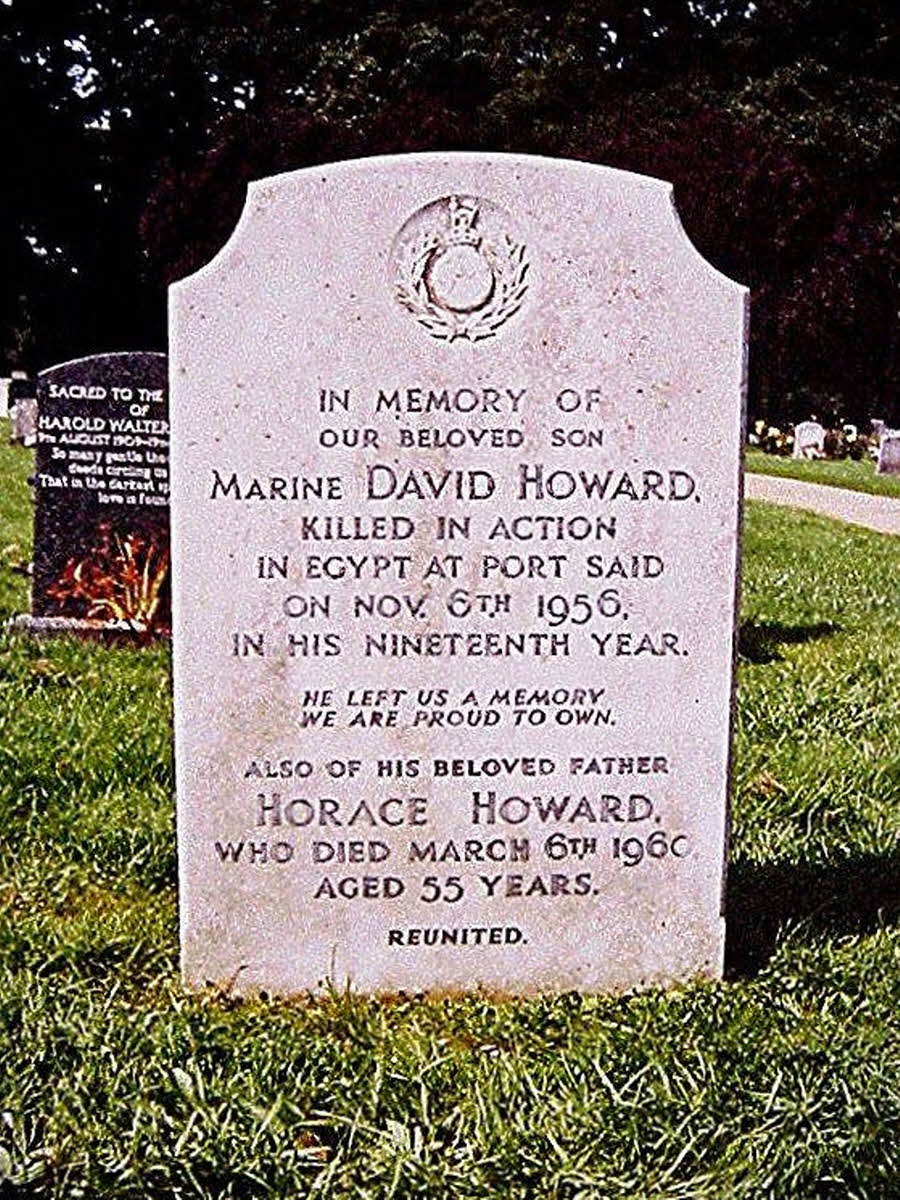 Operation Musketeer. Inscription: In memory of our beloved son Marine David Howard killed in action in Egypt at Port Said 0n Nov. 6th 1956. In his nineteenth year. He left us a memory we are proud to own