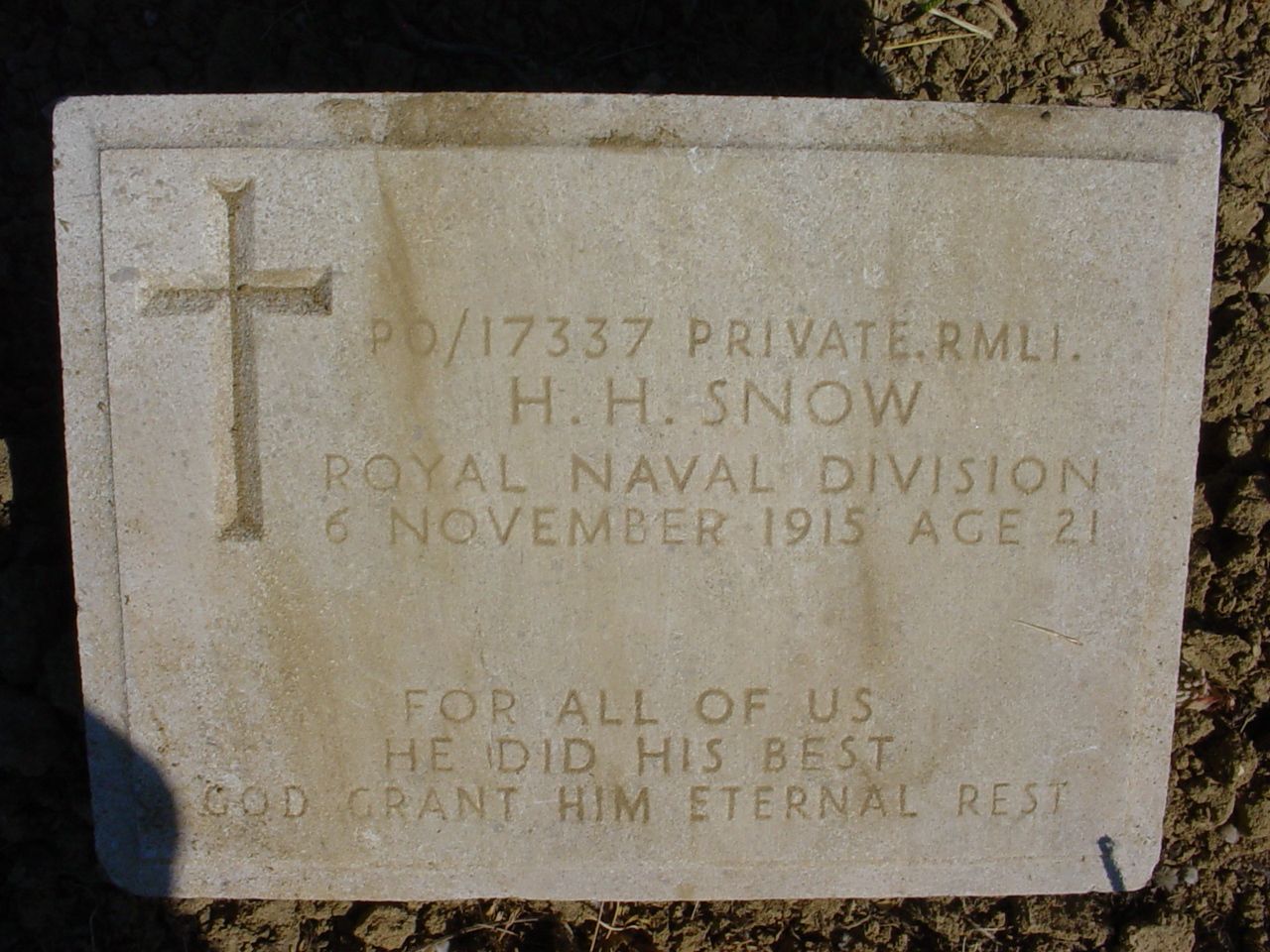 Son of Henry and Mary Ann Snow, of 13, Trafalgar Square, Gosport, Portsmouth.