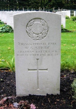 Son of James and Elizabeth Stride; husband of Edith Maud Stride, of 22, Glennmore St., Southchurch, Southend-on-Sea. Served in the South African Campaign with the 1st Bn. Royal Scots. Born at Mortlake, London.
