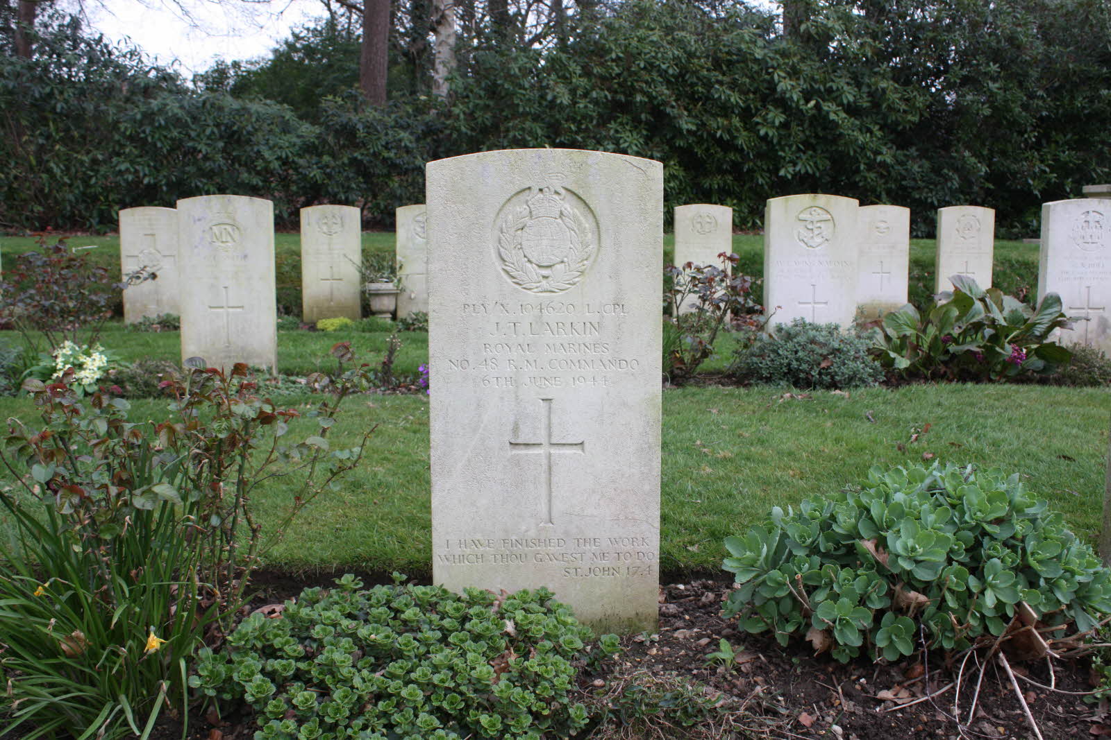Killed at St. Aubin-sur-Mer, France. HC Plot M, row 12, grave 81. Inscription: I have finished the work thou gavest me to do