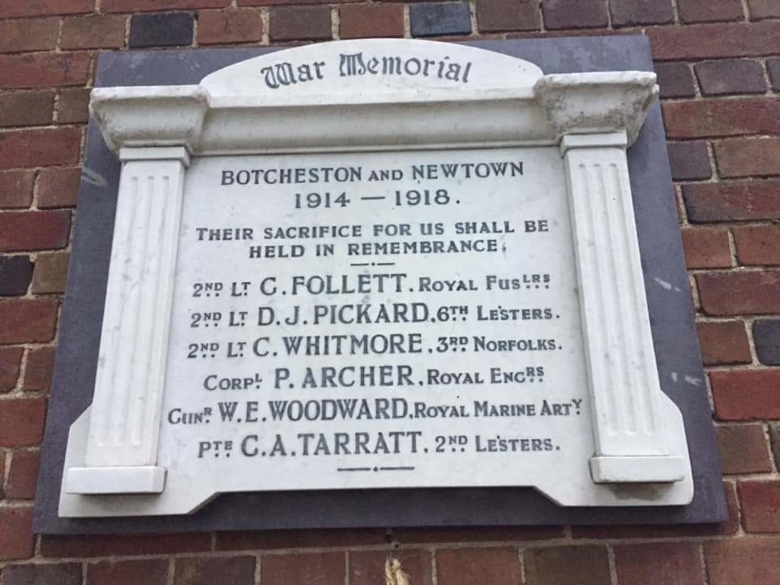 War Memorial Plaque Botcheston & Newtown, 1914-1918