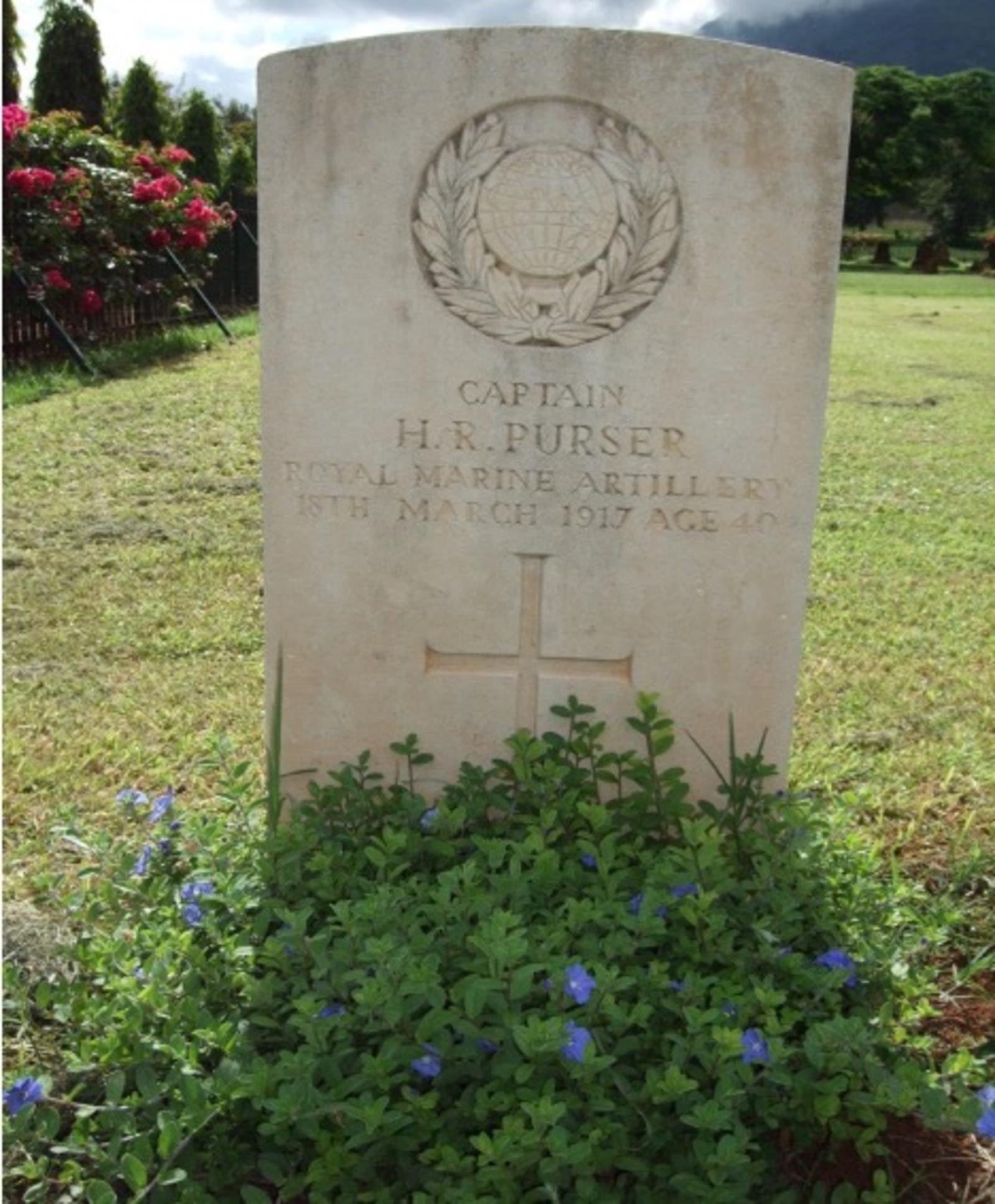 Son of the Rev. T. S. Purser, of Holme Side House, Biggleswade, Beds; husband of Ellen Purser. Served in the Matabele and South African Campaigns. Also served in France and Flanders, and in German South-West and East Africa.