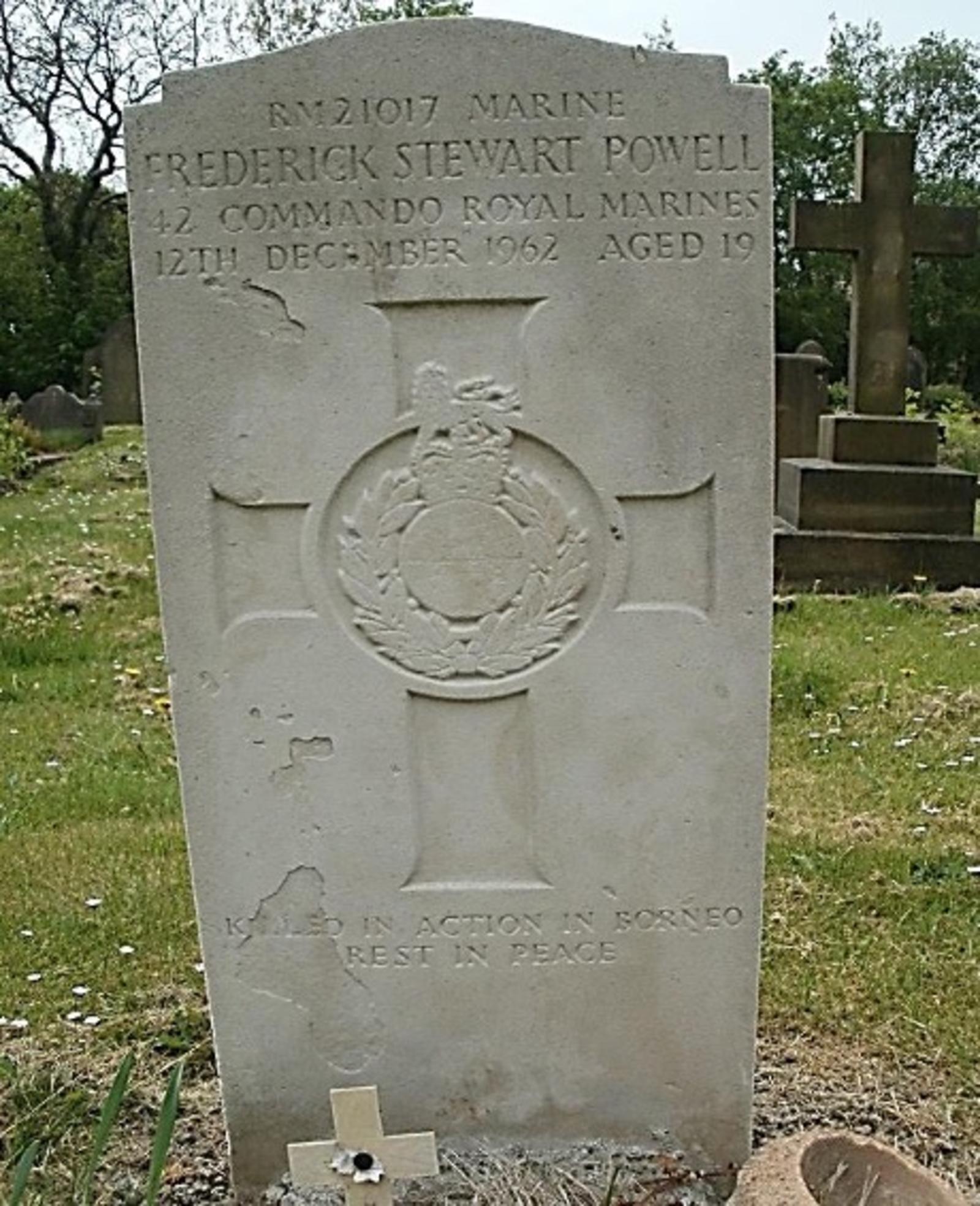Marine Fred Powell, Lima Company, died during an action which resulted in the rescue of hostages taken and held at Limbang, Sarawak.