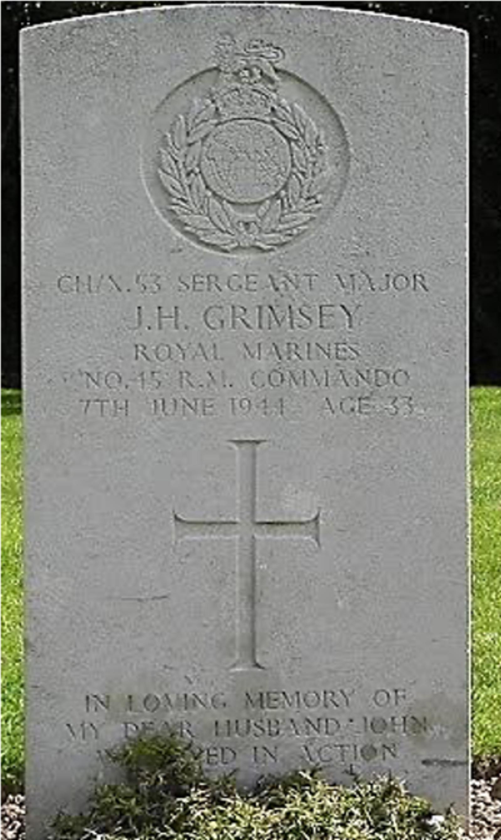 Son of John and Alice Elizabeth Grimsey; husband of Georgina Mary Grimsey, of Gillingham, Kent.