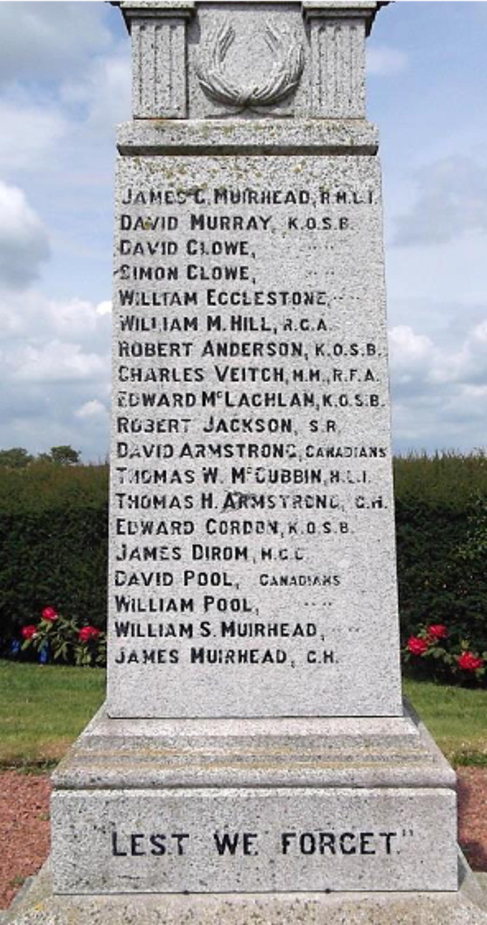 Son of Alexander and Elspeth Muirhead, of Lowthertown, Dornock, Eastriggs, Dumfriesshire.