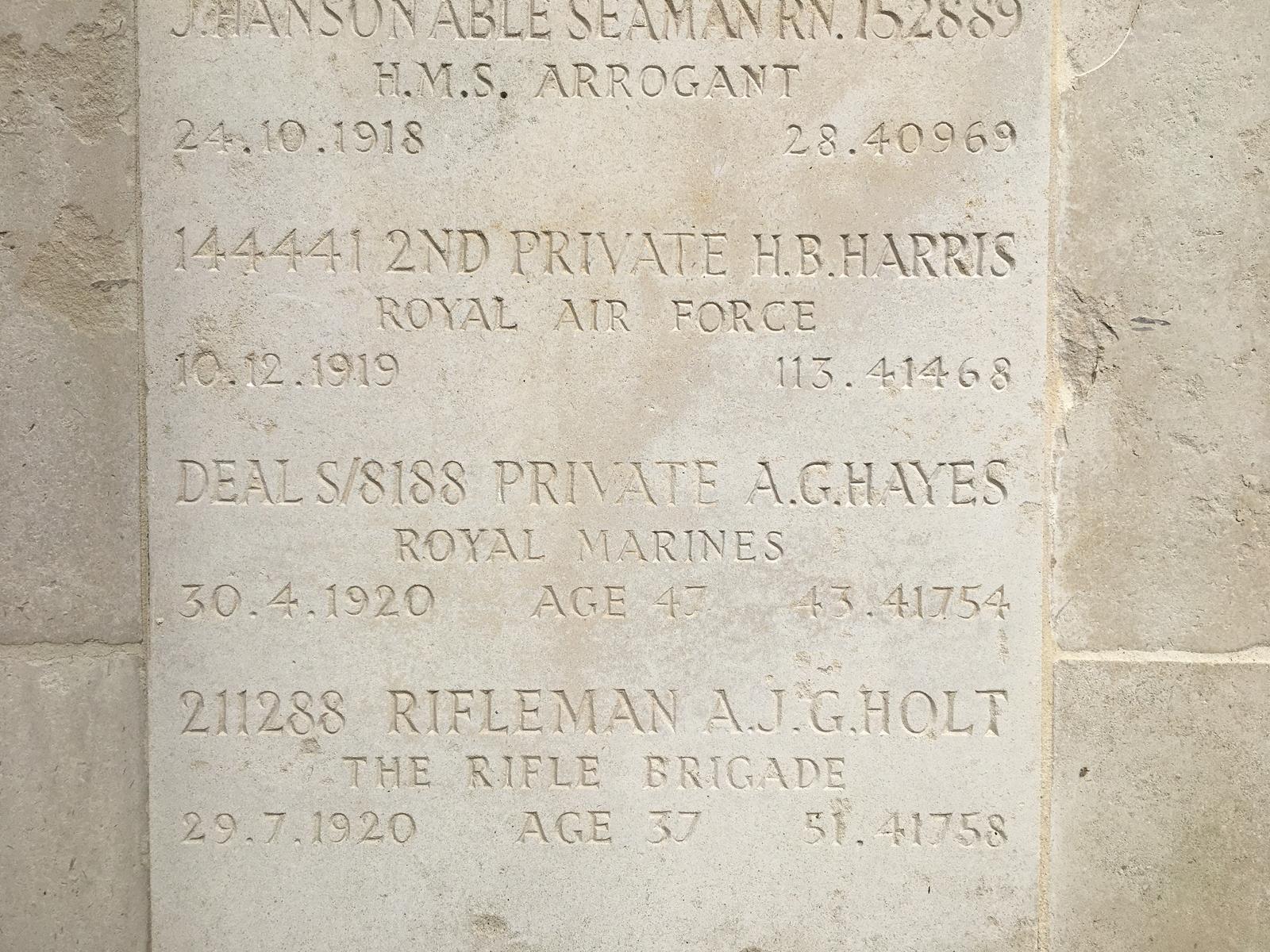 Husband of Nellie Hayes, of 84, Leverton St., Kentish Town, London