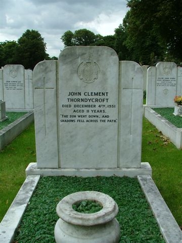 After Dark on the evening of 4 december, 1951, a bus ran into a marching group of Royal Marines Cadets, of whom 24 died. 22 are buried in Gillingham New Cemetery ( Naval & Military Section ), including 3 in its Roman Catholic enclave. Inscription: ( Place of rest not known)