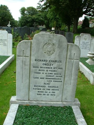 After Dark on the evening of 4 December, 1951, a bus ran into a marching group of Royal Marines Cadets, of whom 24 died. 22 are buried in Gillingham New Cemetery ( Naval & Military Section ), including 3 in its Roman Catholic enclave. Inscription: ( Place of rest not known )