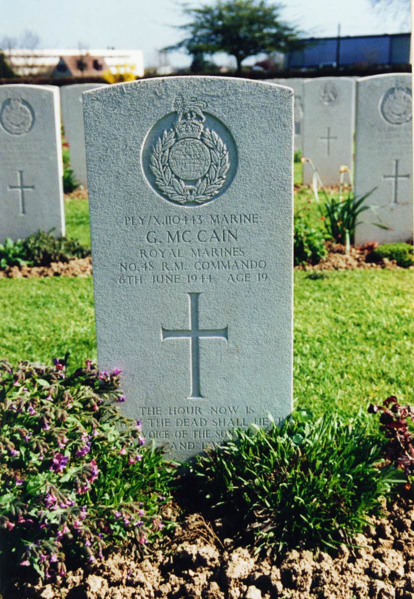 Killed at St. Aubin-sur-Mer. BWC Plot XlV, row A, grave 9. Inscription: .