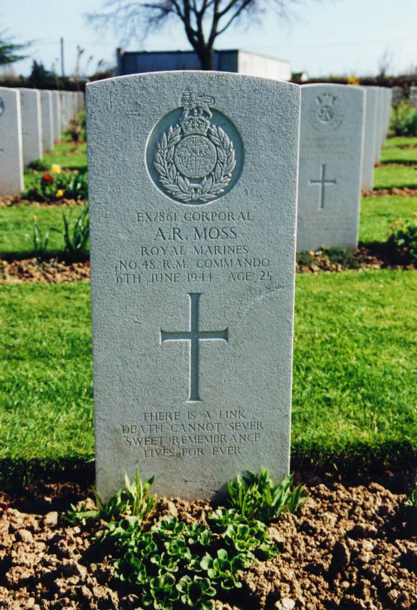Killed at St. Aubin-sur-Mer. BWC Plot XlV, row A, grave 20. Inscription: There is a link death cannot sever - sweet remembrance lives for ever