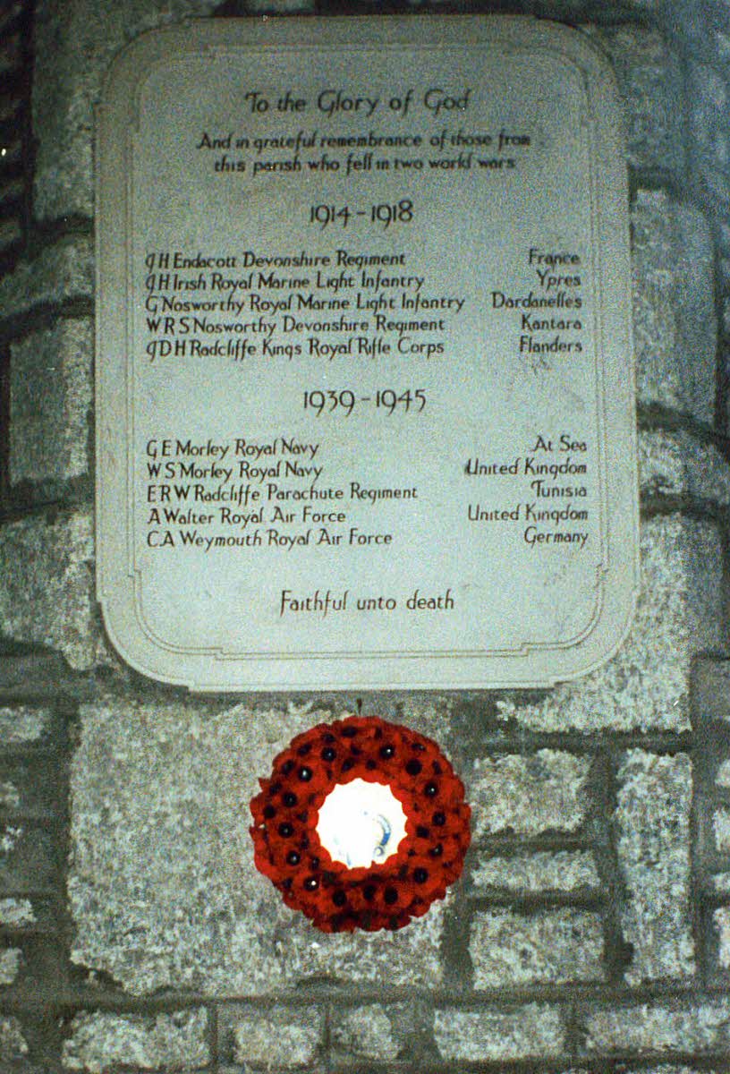 Marine Nosworthy was killed in the Dardanelles. Memorial Plaque located Church of St. Pancras, Widdecombe-in-the-Moor. (Church is known as the Cathedral of the Moor ) Inscription: To the Glory of God and in grateful remembrance of those from this parish who fell in two world wars. Faithful unto death.