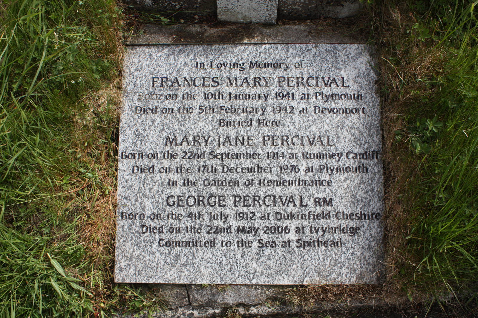 Committed to the sea, Spithead Inscription: Memorial Headstone