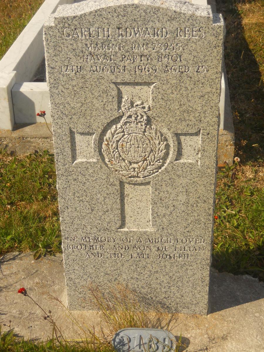 Marine Rees was killed in a traffic accident whilst serving with Naval party 8901.