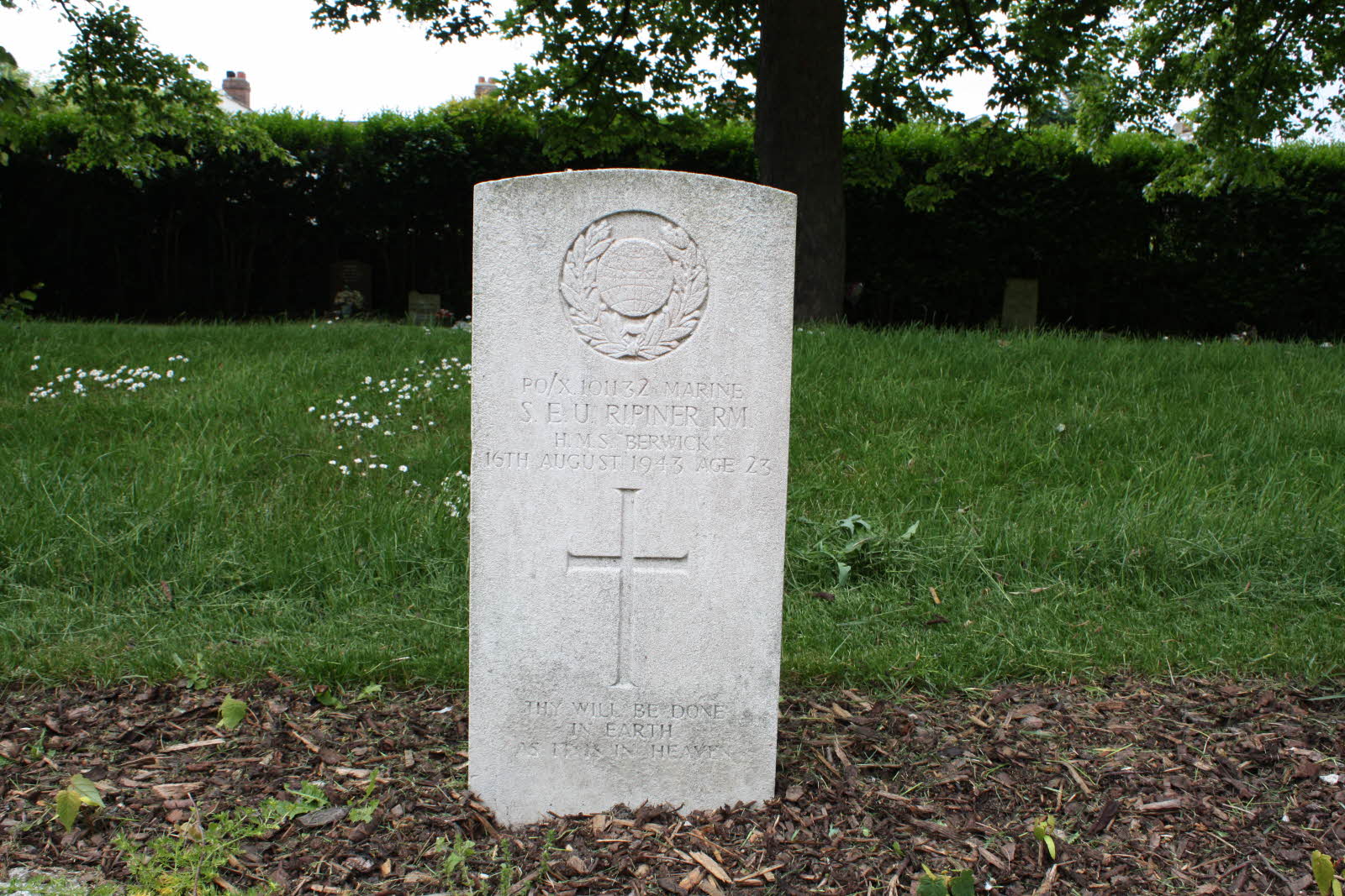 Marine Repiner was killed in an enemy air attack on Portsmouth Inscription: Thy will be done in earth as it is in Heaven