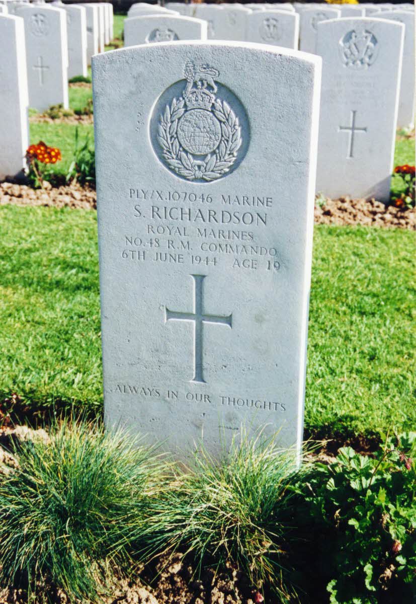 Killed at St.Aubin-sur-Mer. BWC Plot XlV, row B, grave 9. Inscription: Always in our thoughts