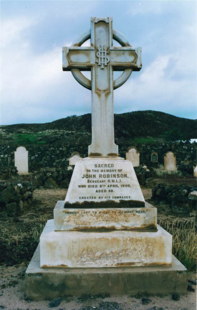 Located St. Mary's Church. St. Mary's was formerly the church of the Royal Marine Light Infantry who formed the garrison. Sergeant. Robinson died whilst serving on HMS 'Monarch'. Inscription: Erected by his comrades - though lost to sight to memory dear.