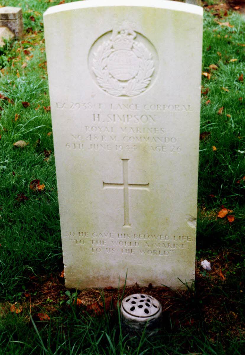 Killed at St. Aubin-sur-Mer, France. WBG Plot SECN, 3295. Inscription: So he gave his beloved life - to the world a Marine - to us the world