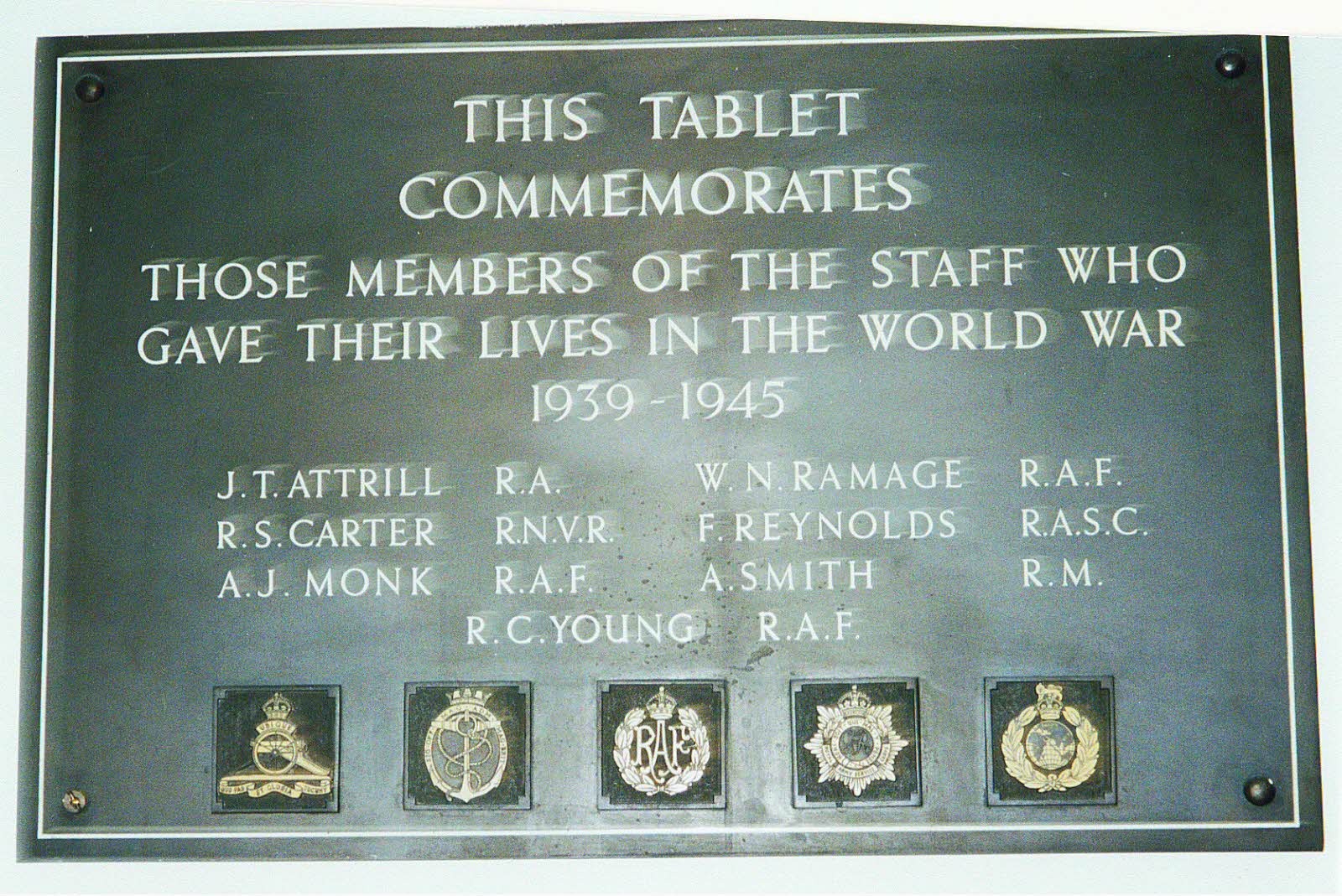 Memorial Plaque Newport County Hall, Isle of Wight. Marine Smith was killed whilst serving in Crete. His name is inscribed on the Plymouth War Memorial.