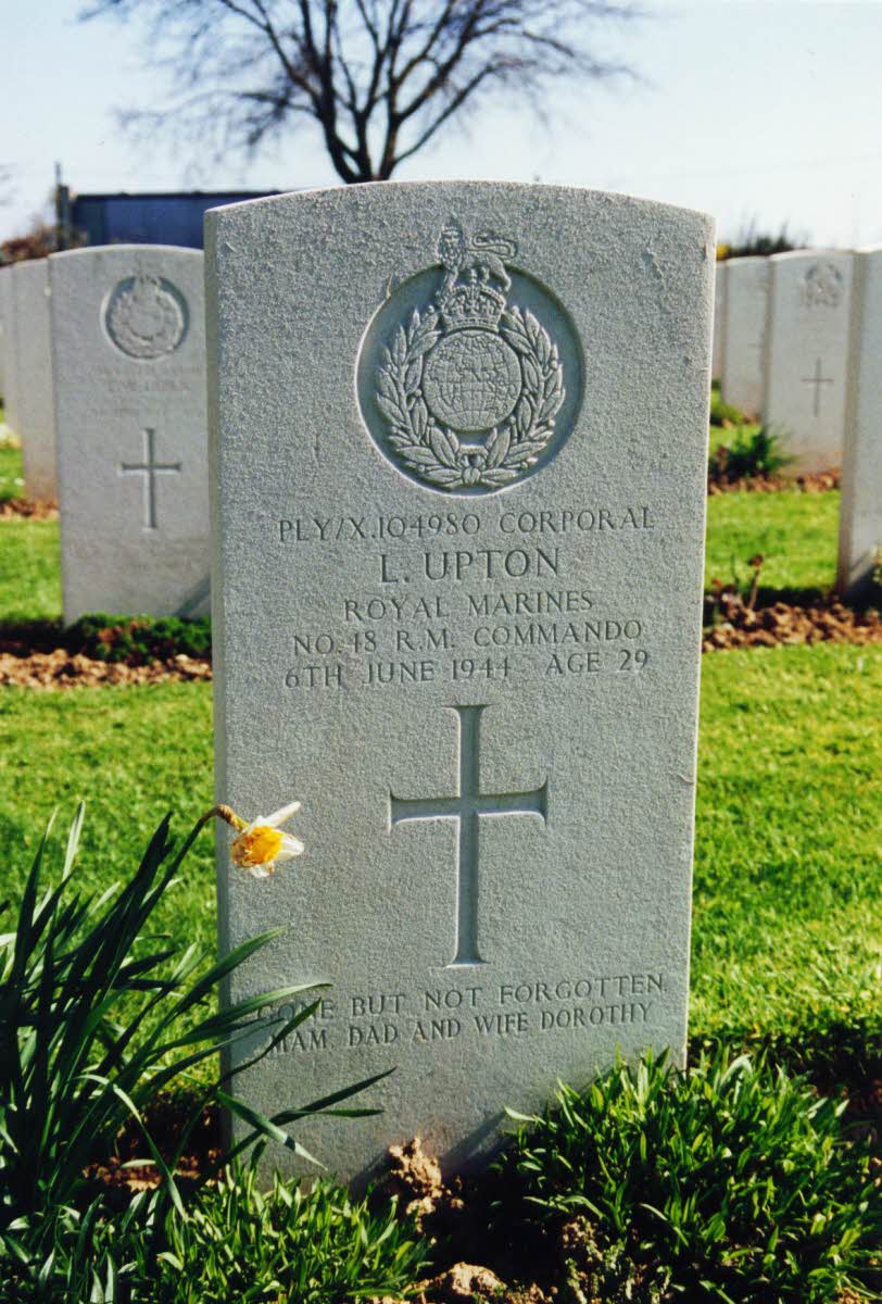 Killed at St. Aubin-sur-Mer. BWC Plot XlV, row A, grave 15. Inscription: Gone but not forgotten - Mam, Dad and wife Dorothy