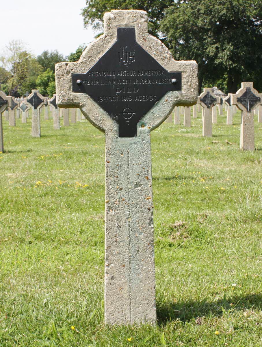 Husband of Matilda A. Hambrook, of 2, Frater Cottages, Frater Lane, Elson, Gosport, Hants. Born at Folkestone, Kent.