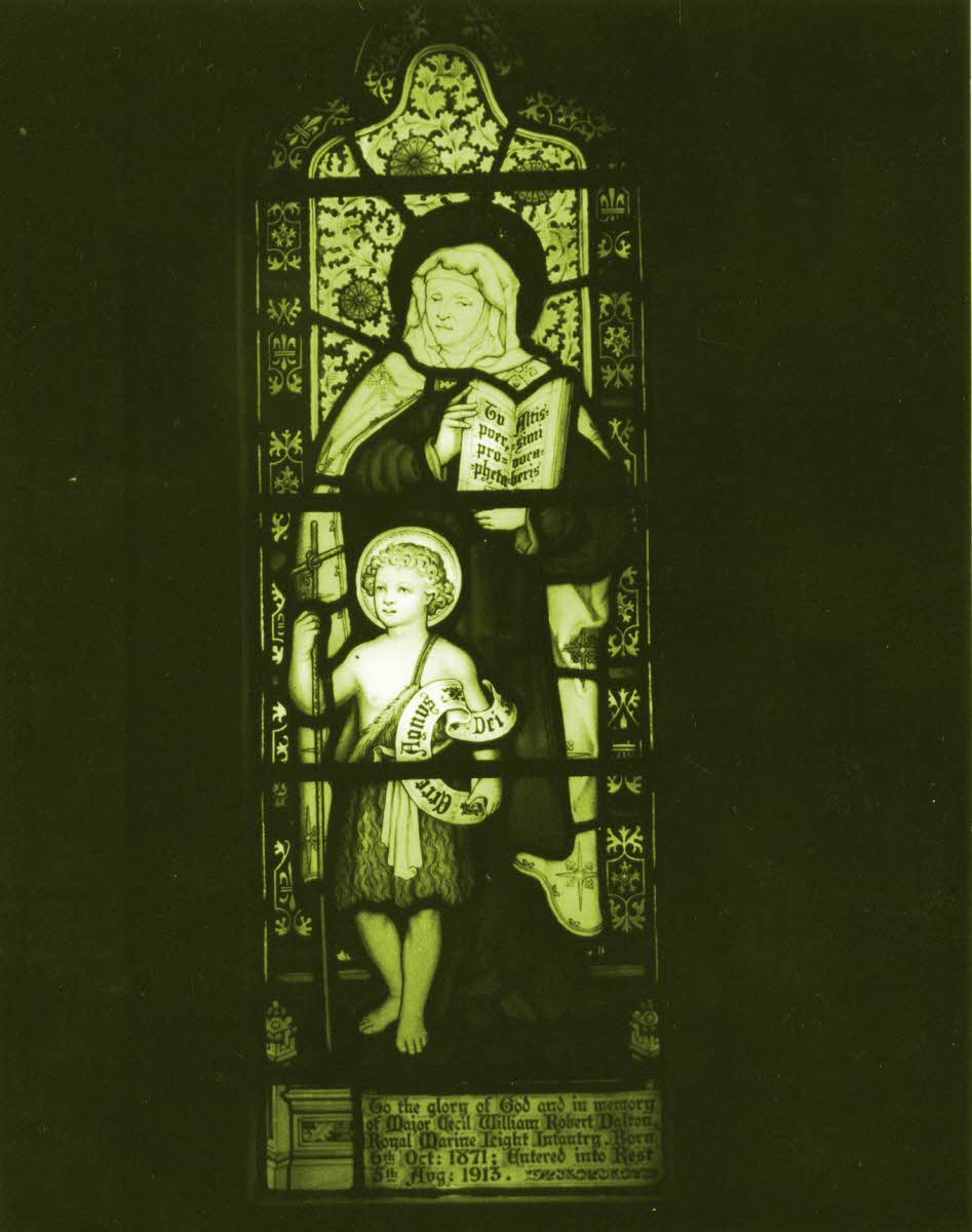Located St. Michael and All Angels Church, the Royal Marines School of Music, Deal, Kent. Inscription: To the Glory of God and in the memory of Major Cecil William Robert Dalton, Royal Marines Light Infantry. Born 6 October, 1871: into rest 5 August, 1913