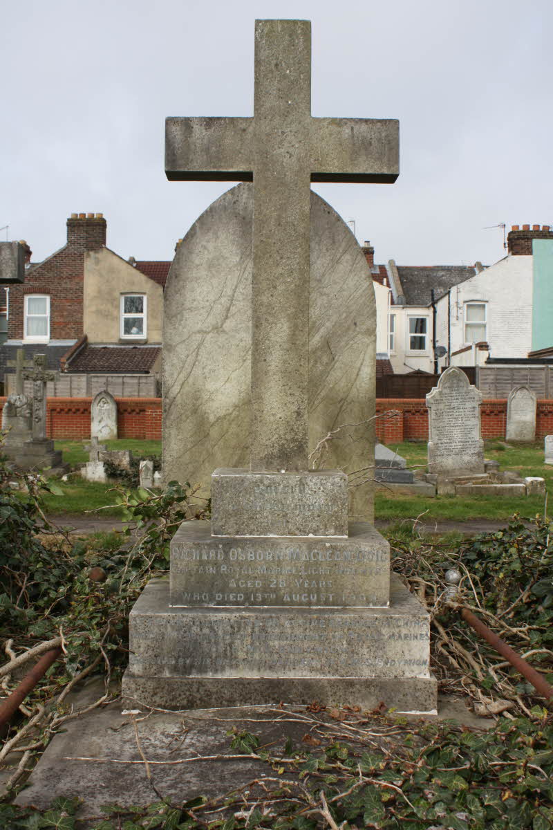 Inscription: RICHARD OSBORN MACLEAN DOIG, Captain Royal Marine Light Infantry. Aged 28 years, who died 13 August, 1900, of fever contracted on Active Service in China while in command of detachment of Royal Marines of HMS Endymion. Erected by officers HMS Endymion.