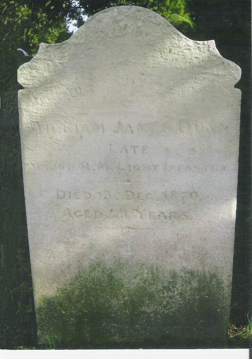 Inscription: To the Memory of William James Dunn Major RM Light Infantry Died 19 Dec 1870 Aged 40 Years