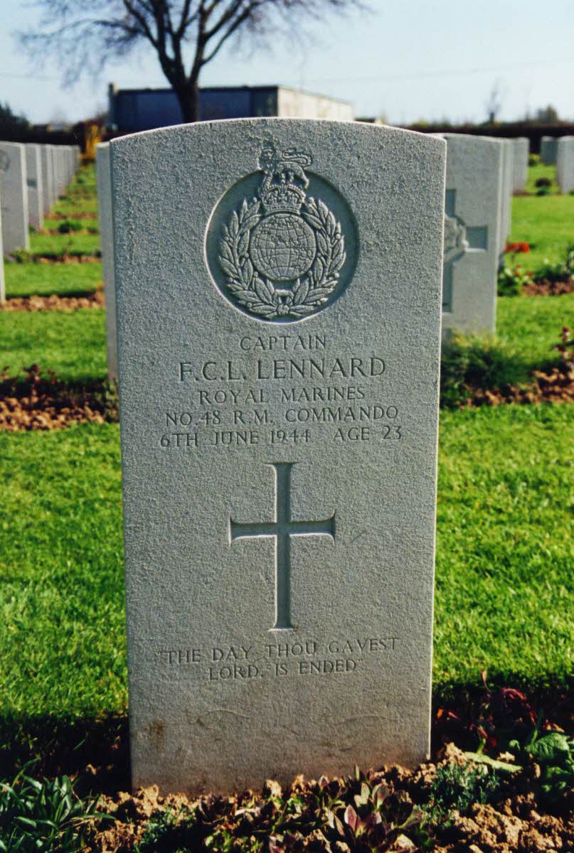 Killed at St. Aubin-sur-Mer. BWC Plot XlV, row A, grave 23. Inscription: The day thou gavest Lord, is ended