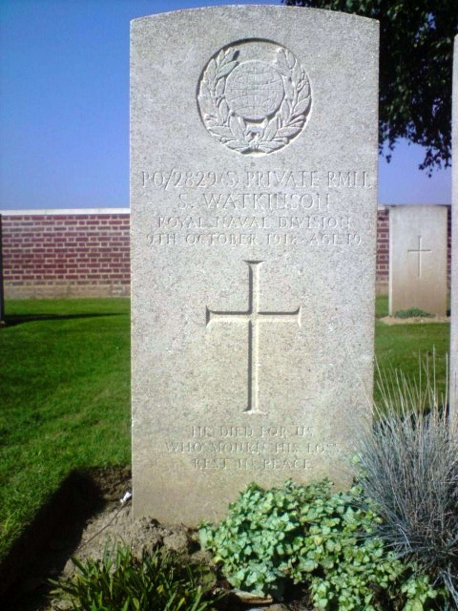 Son of Mr. W. J. Watkinson, of 35, Penny Lane, Collins Green, Newton-le-Willows, Lancs.