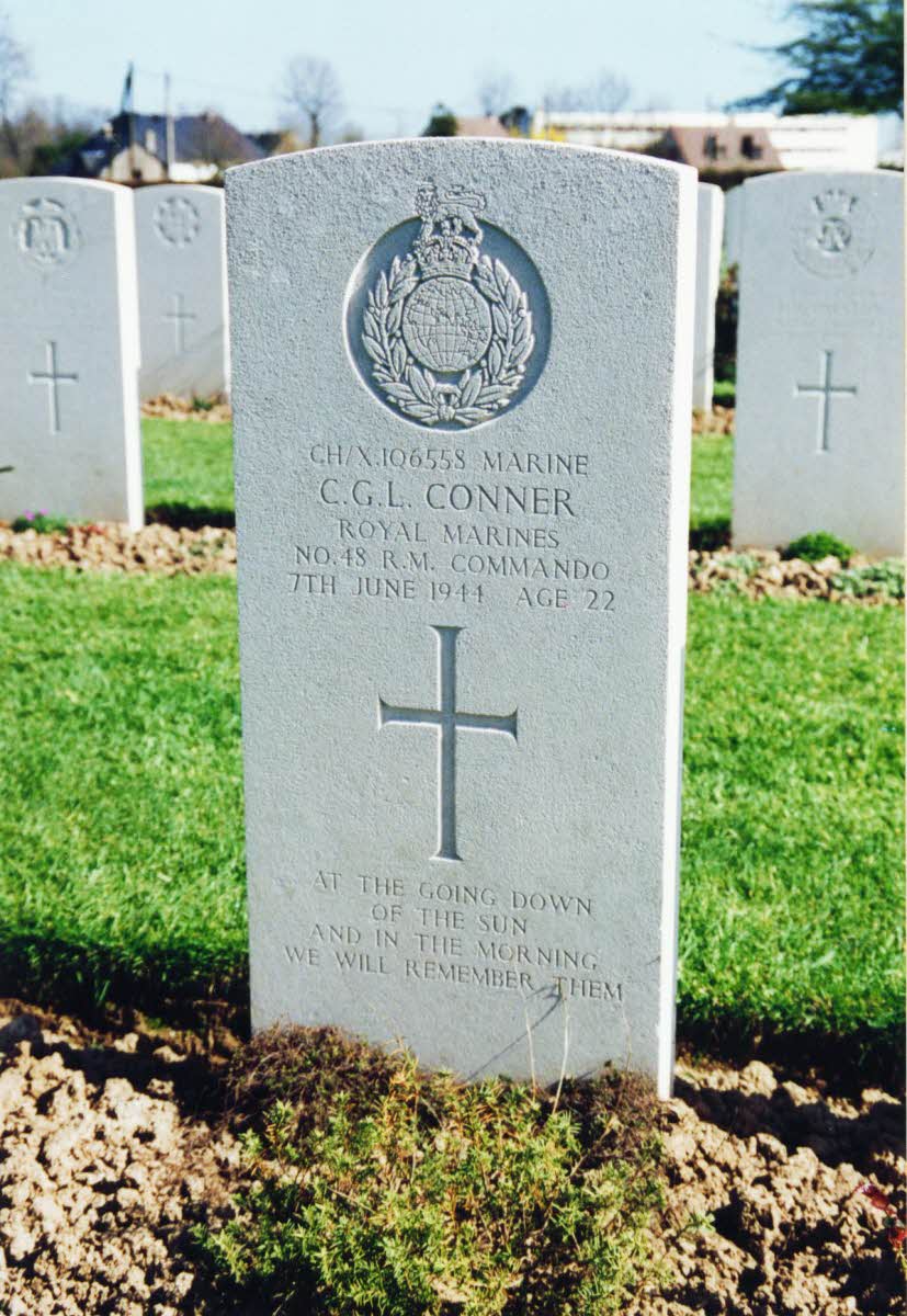 Killed at St. Aubin-sur-Mer. BWC Plot XlV, row D, grave 14. Inscription: At the going down of the sun and in the morning we will remember them