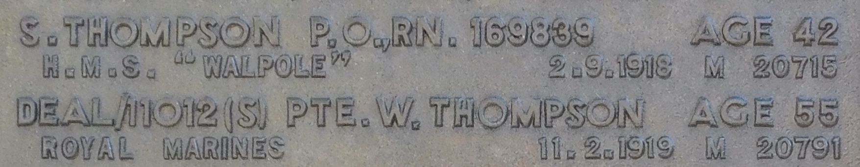 Husband of W. Thompson, of 34, Norfolk Rd., Essex Rd., Islington, London.