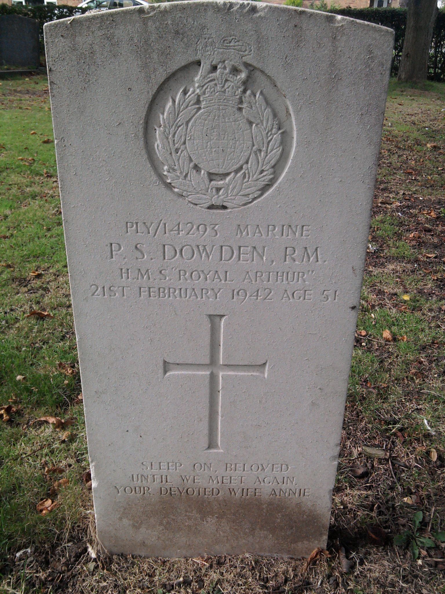 Husband of Annie Esther Dowden, of Mutley, Plymouth.