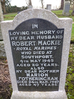 Son of James Mackie, and of Jessie Mackie (nee Parish); husband of Ethel Rose Mackie, of Lowton St. Marys, Lancashire.