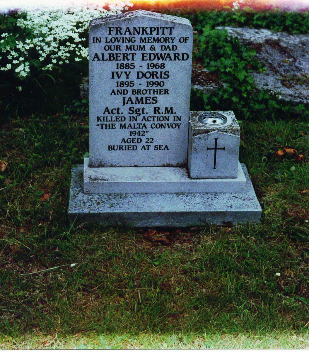 Corporal Frankpitt was Acting Sergeant, when killed whilst serving on board HMS 'Indomitable' in the Malta Convoy, 1942. His name is inscribed on the Portsmouth War Memorial.