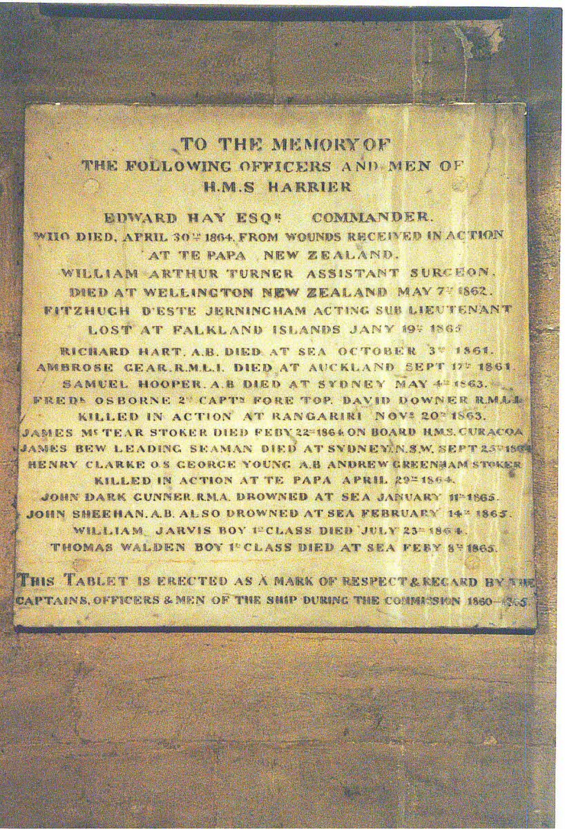 Private Ambrose Gear died at Auckland, New Zealand. HMS 'Harrier' Memorial Plaque is located in St. Mary's Church, Fratton Road, Portsmouth.