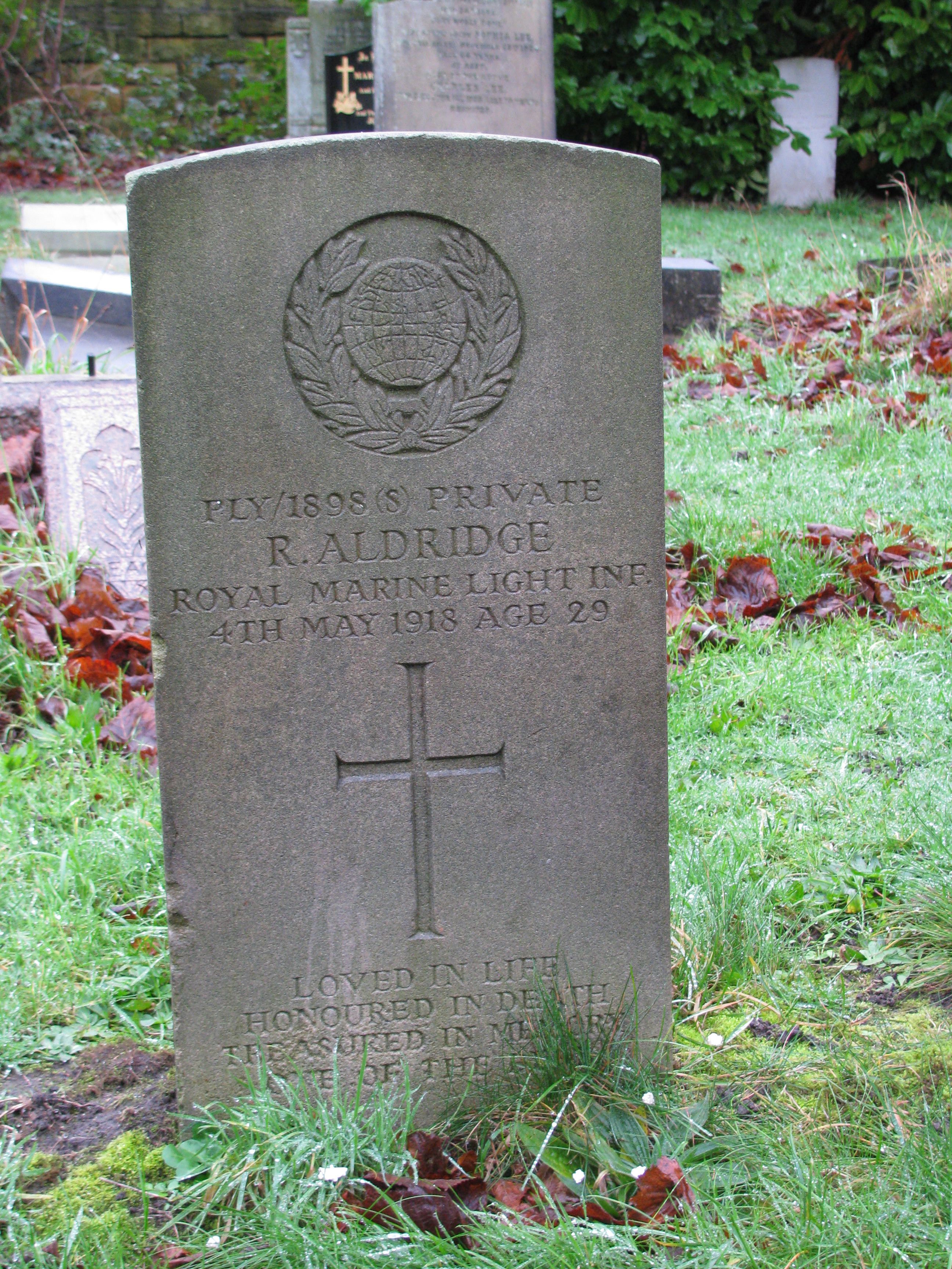 Son of Richard and Margaret Aldridge; husband of Marie Aldridge, of 12, Brick Place, Poulton, Wallasey, Cheshire. Born at Birkenhead.