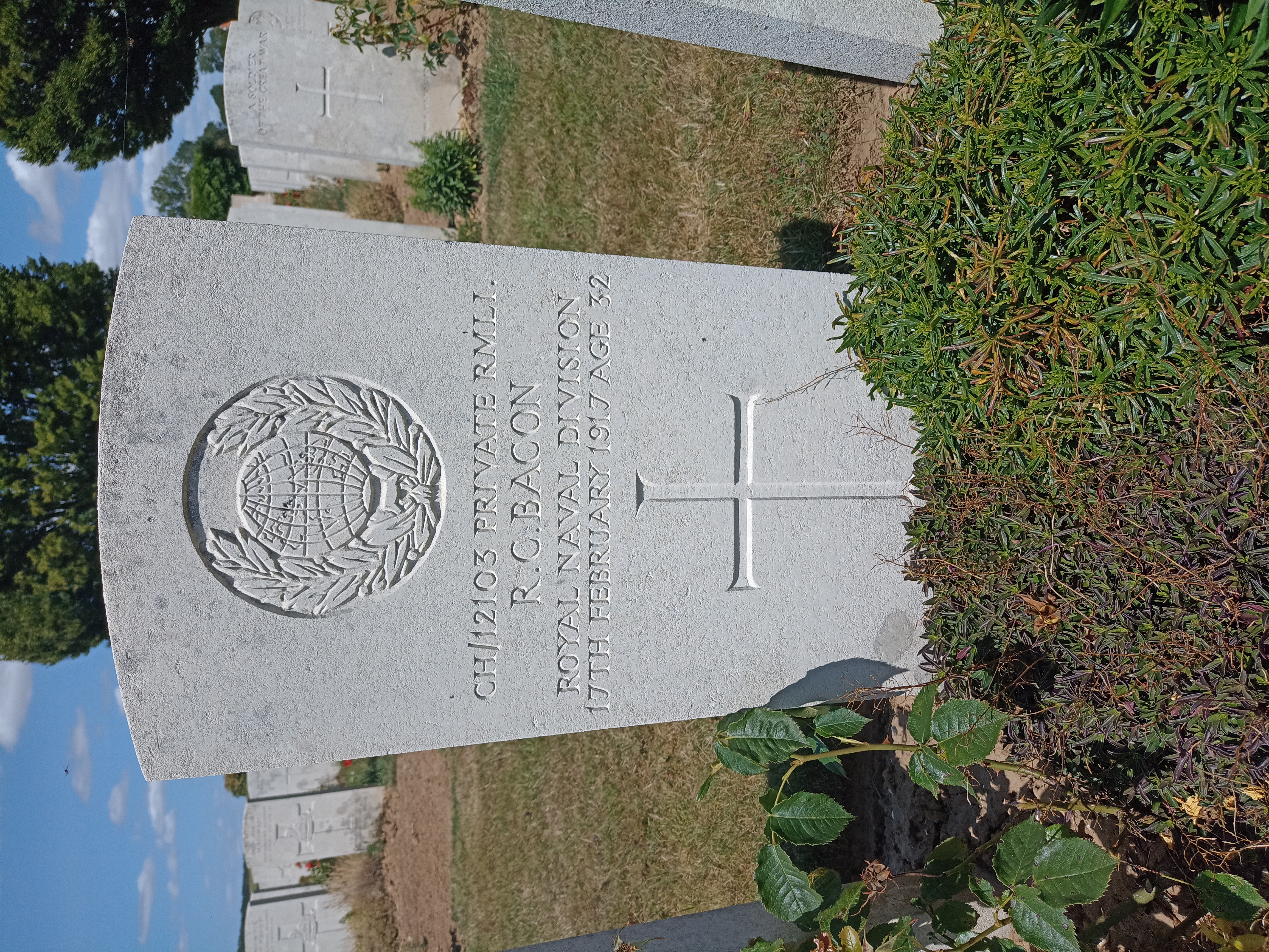 Husband of Florence Elizabeth Bacon, of 21, Derbyshire St., Bethnal Green, London.
