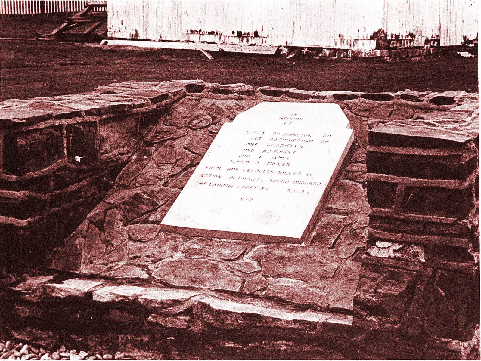 Memorial located Falkland Islands. From HMS Fearless killed in action in Choisel Sound on board the landing Craft F4. See also entry 761.
