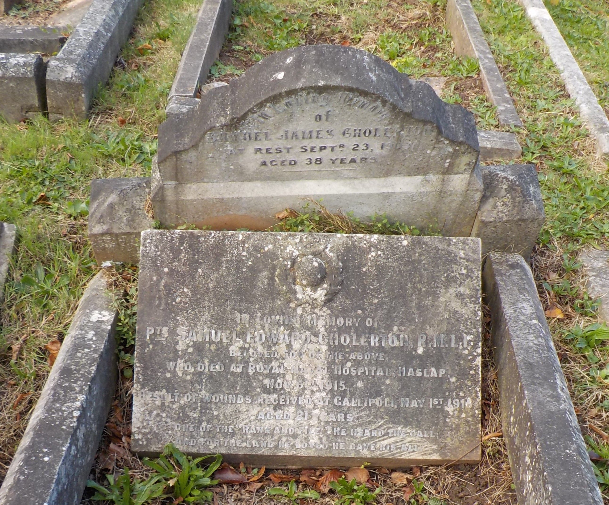 Son of Lavinia Blanche Cholerton, of 57, Crompton St., Derby, and the late Samuel James Cholerton.