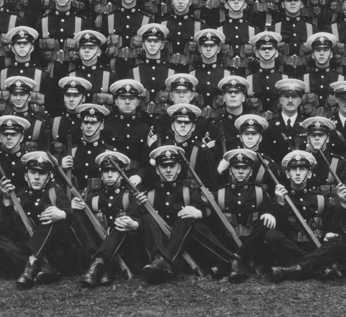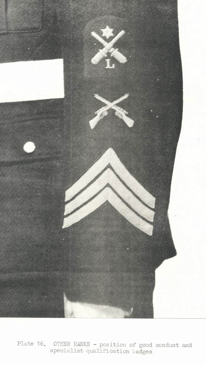 RM Gunlayer, Marksman badges and Service Chevrons on Sleeve