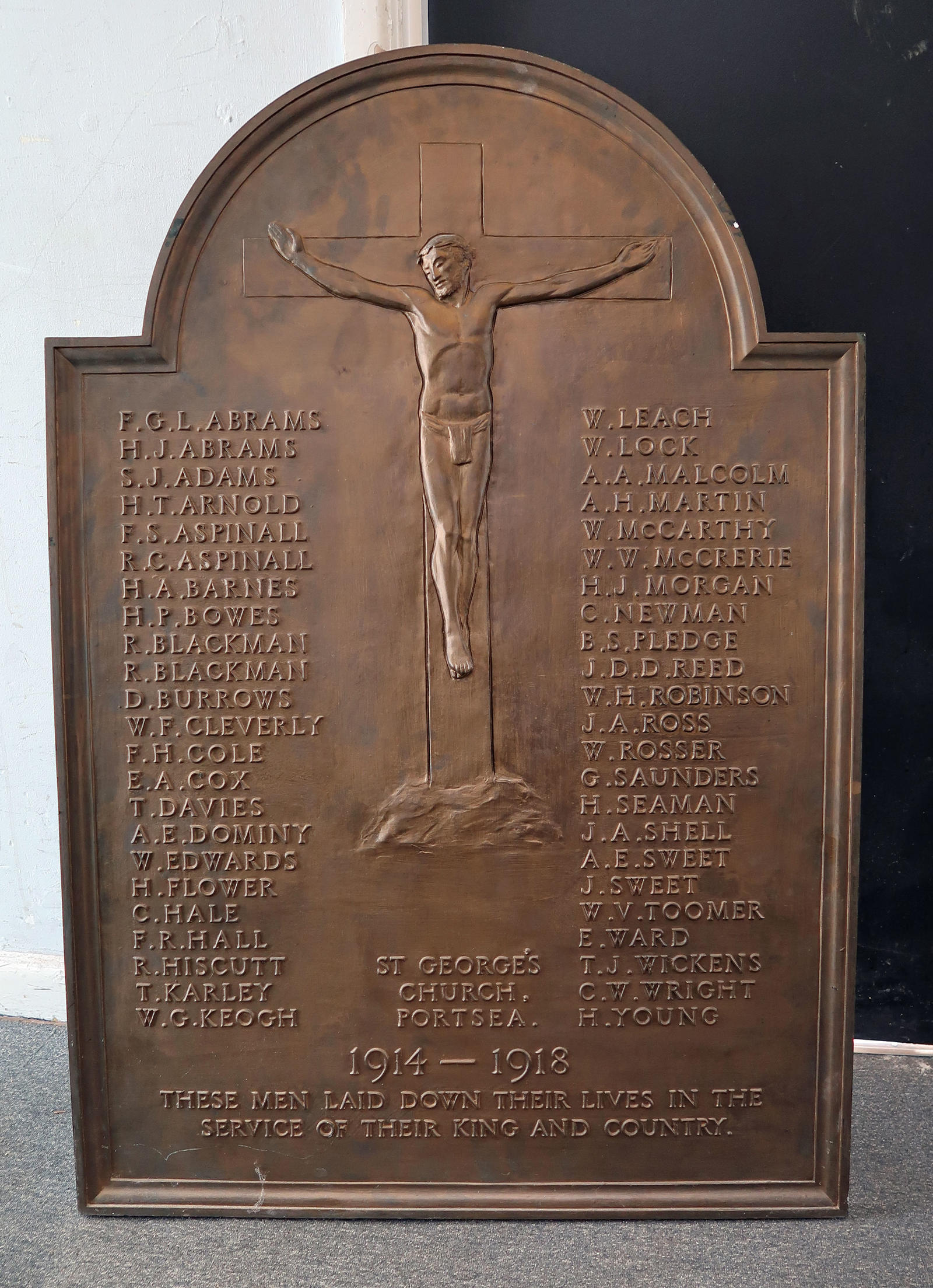 St George's Church, Portsea. 1914-1918 These men laid down their lives in the service of their King and Country. Includes: F S Aspinall, poss W H Robinson; poss J A Ross; Poss H Young