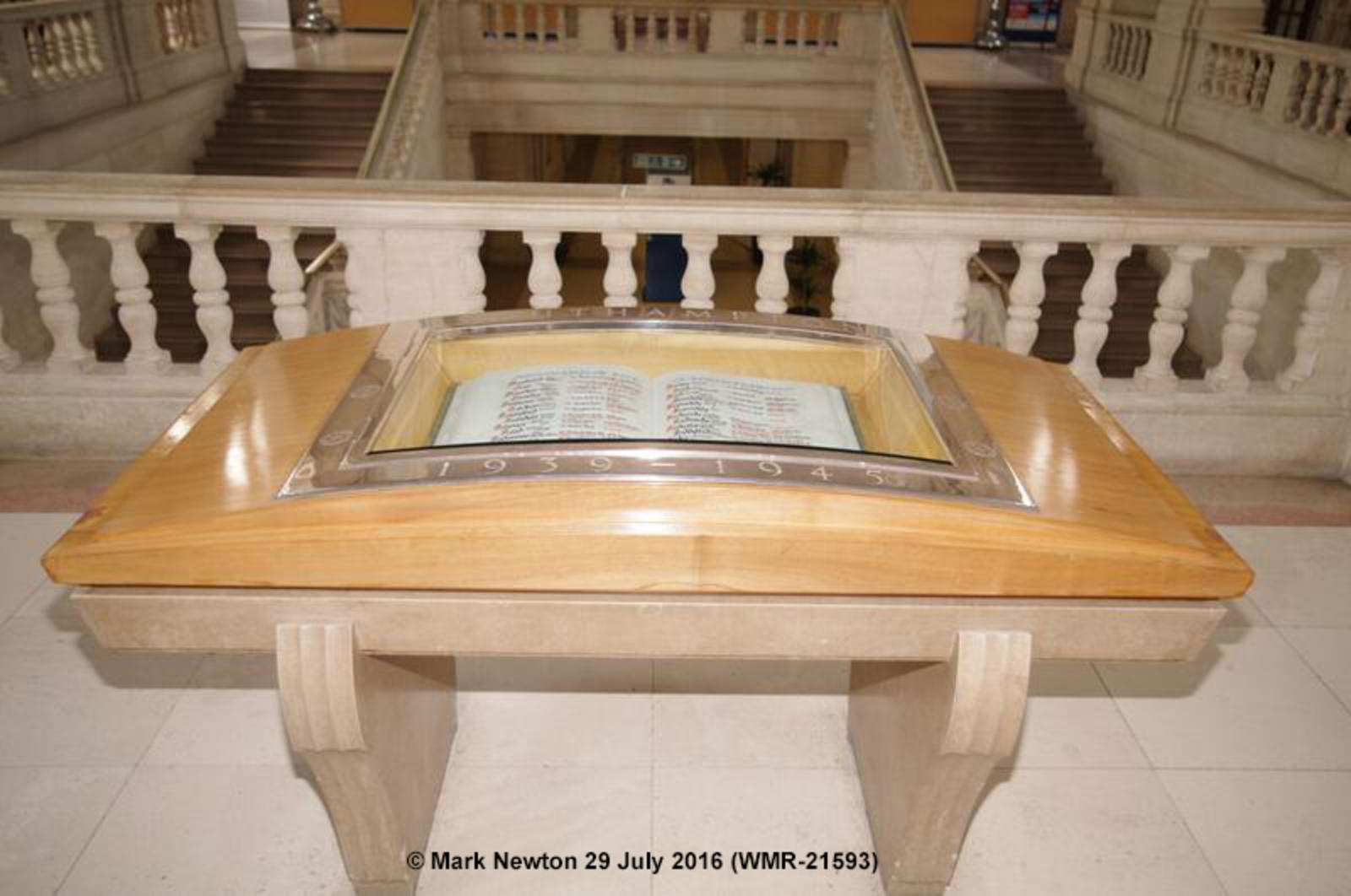 The book is hand-written using calligraphy and records 590 civilian and 510 military (inc Merchant Navy) dead.
