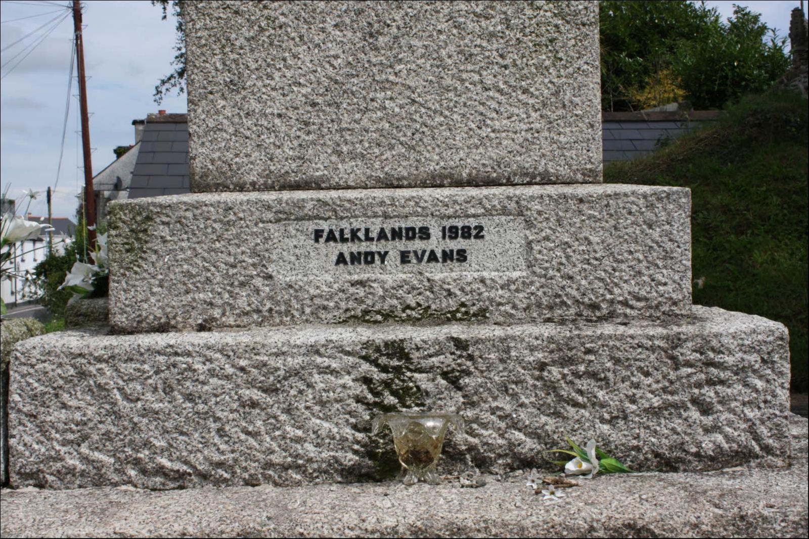 Andrew (Andy) Evans PO25446U Sergeant, 3 Commando Brigade Air Squadron, Royal Marines. Shot down in his Gazelle helicopter near Port-San Carlos by small arms fire 21st May 1982. Note: On 21st May 982 two Gazelles of C Flt, 3 CBAS shot down by small arms fire