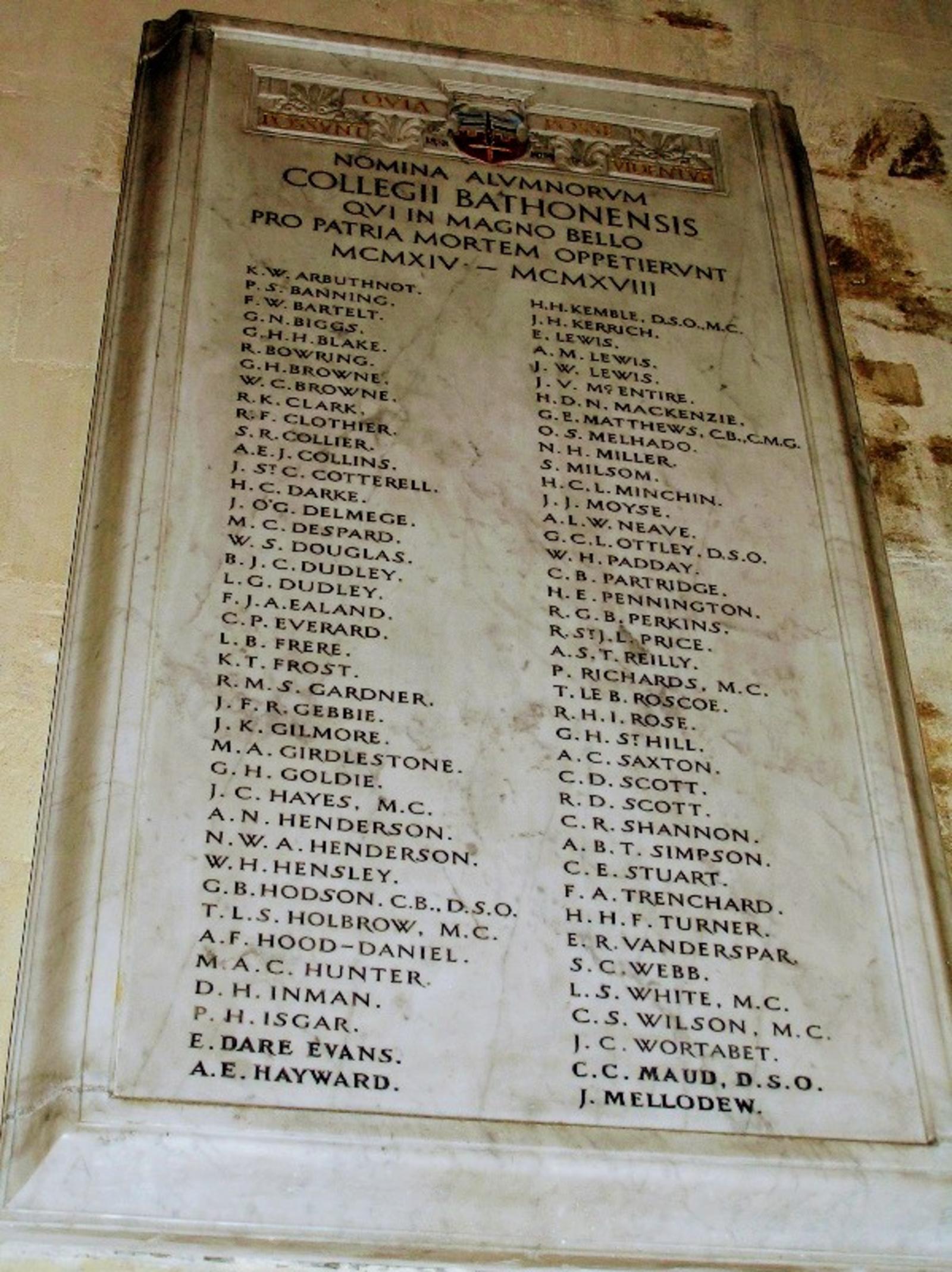 Bath College, Bath Abbey War Memorial