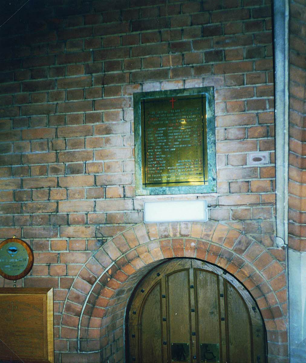 Brass tablet St. George's Church over Vestry Door. Inscription: To the Glory of God and in memory of those who lost their lives while serving in HMS 'Hyacinth' during her commission as Flagship of the East Indies Squadron 1909 - 1911