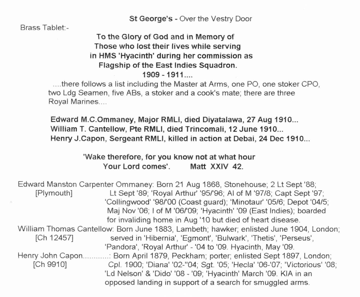 Brass tablet St. George's Church over Vestry Door.