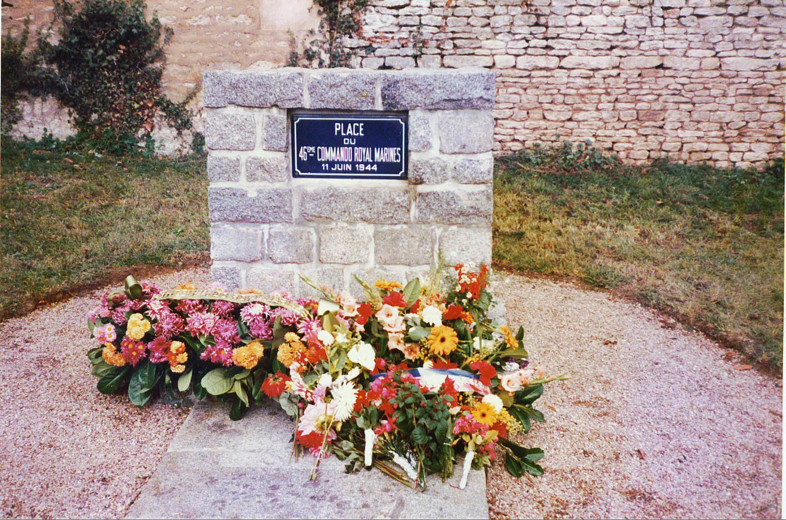 Memorial, located Le Hamel Village Square, Normandy, was unveiled 28 October, 1980, by Gen. Sir Campbell Hardy, KCB, CBE, DSO. ( C.O. of 46 RM Commando during the attack on Le Hamel and Rots ) and Monsieur Dominique Suavalle, Mayor of Le Hamel and Rots Inscription: Place du 46eme Commando Royal Marines, 11 June, 1944